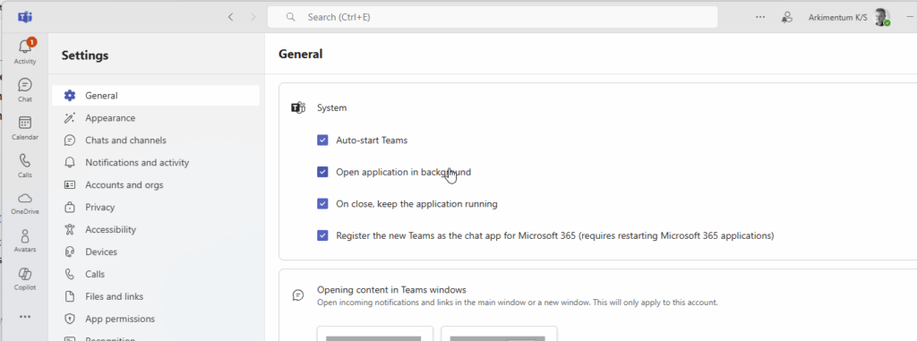 Even when checking that Teams should auto-start and open in the background the settings does not apply?!