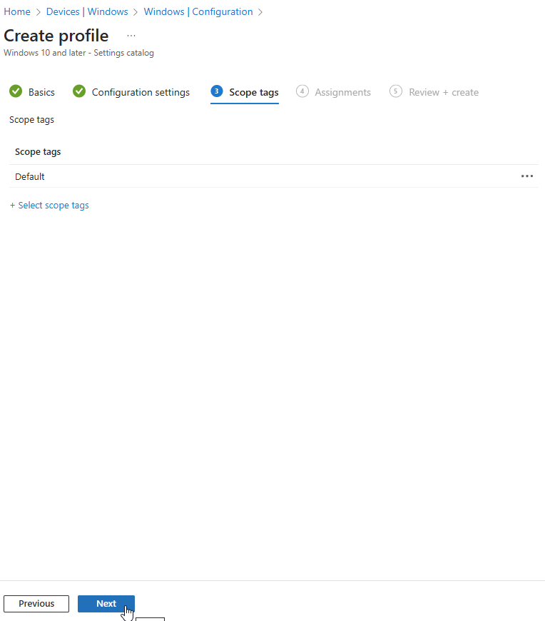 Select Scope tags (If you have any) Default is default 🙂 Click “NEXT”